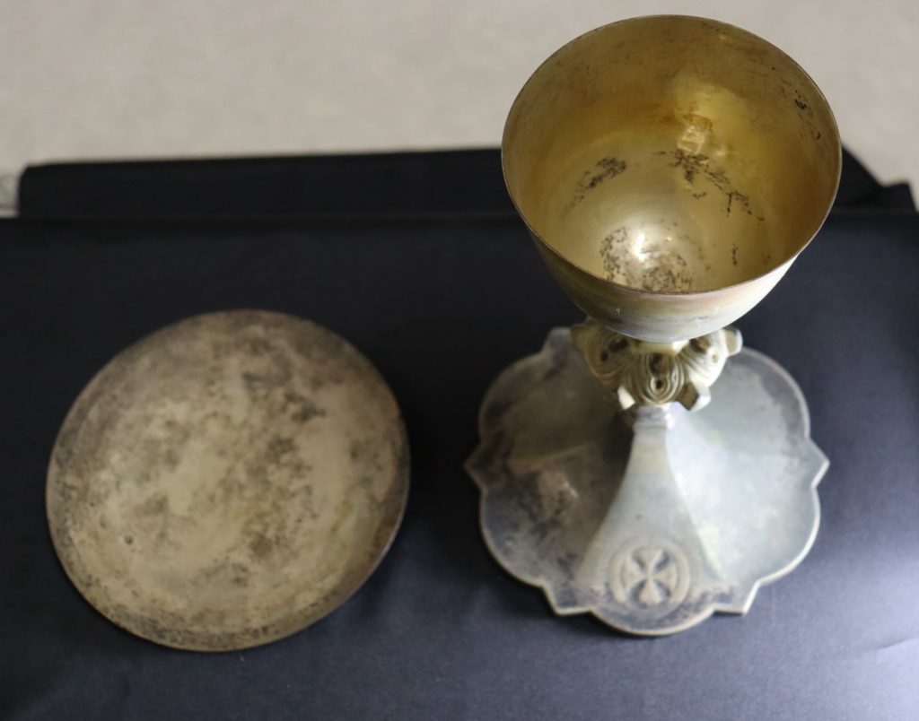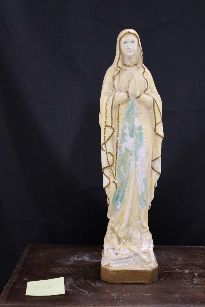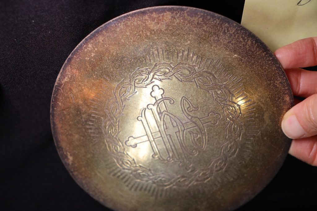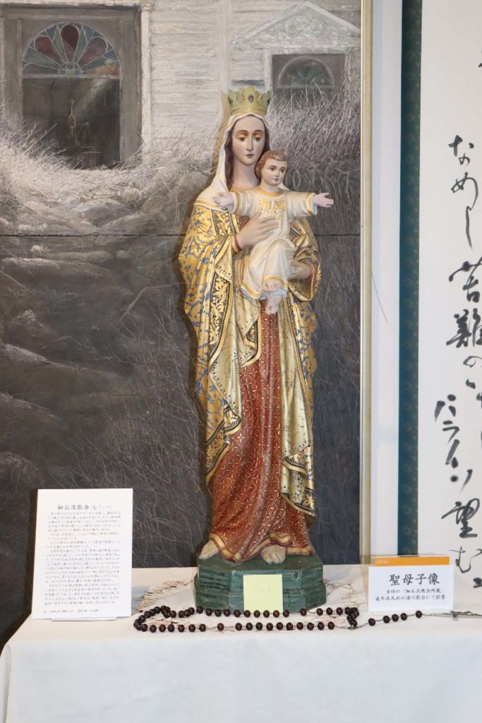 土山湾作品と思われる聖像を3体確認できた。さらに久賀島潜伏キリシタン資料館の目録作りにご協力するように、収蔵された他の聖具、聖画などをも調査した。