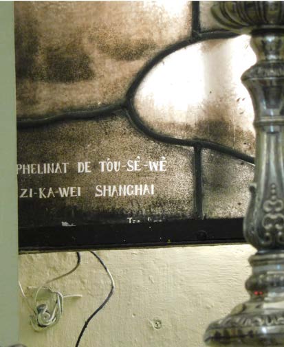 右側のステンドグラスの右下に「土山湾」の印がある。